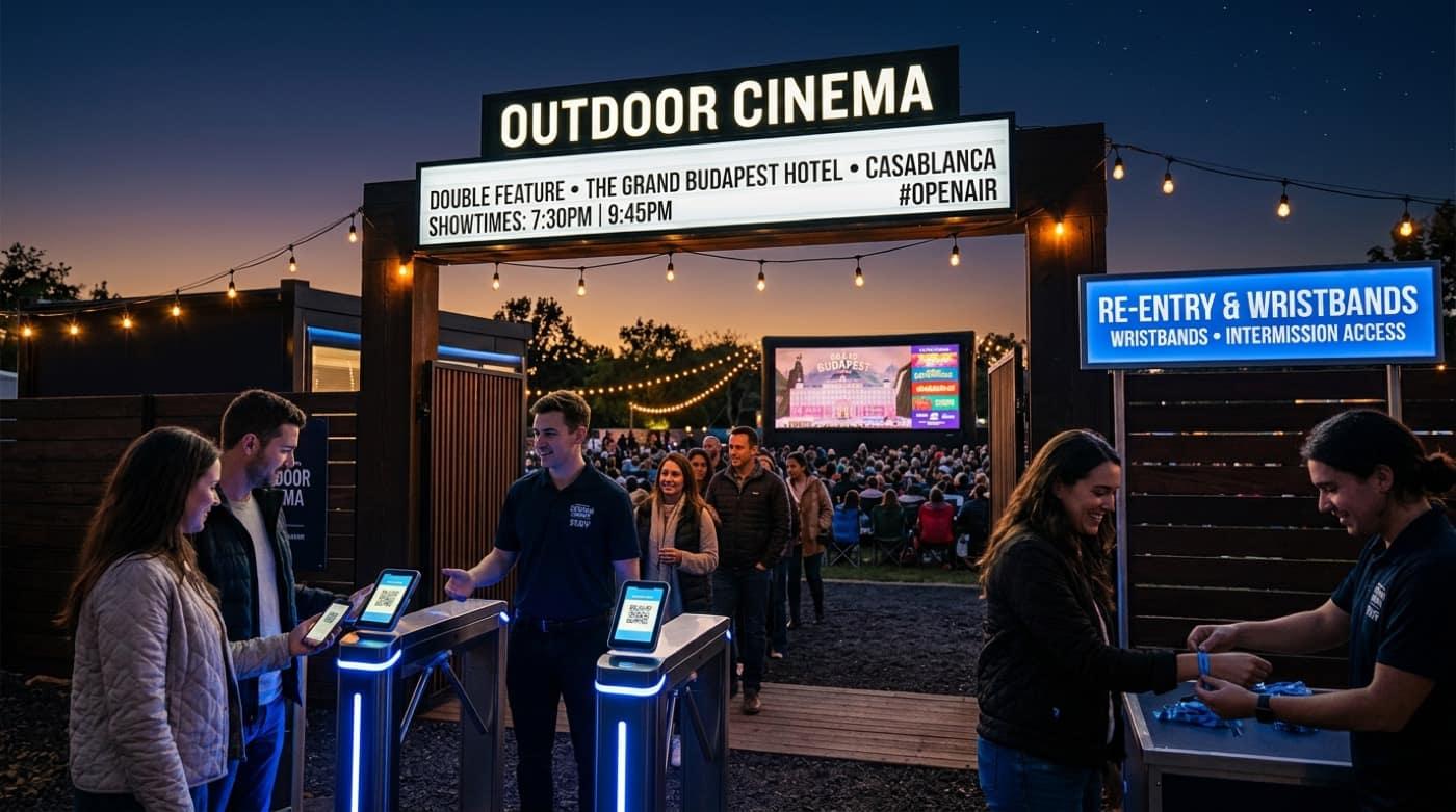 Validate entry, food park exit, and re-entry with fast scans at peak times.