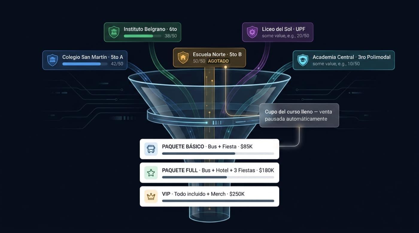 Grouped sales by class, hard caps with live visibility, per-promoter allocations, and cart recovery. Clear policies, branded emails, and door validation built for spikes.