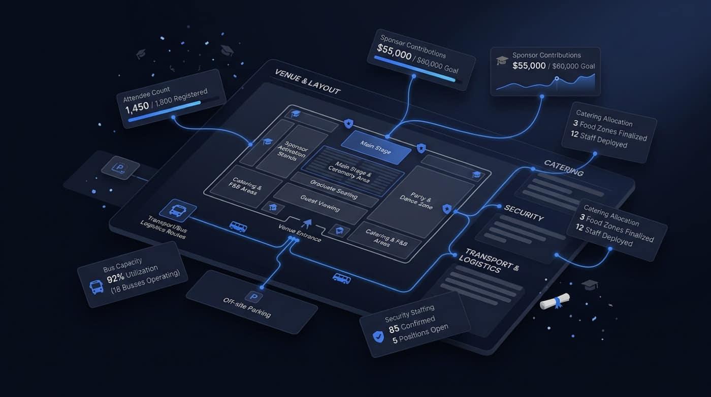 Attendance, source, and engagement. Clear dashboards to coordinate everything.